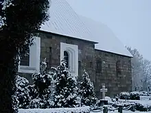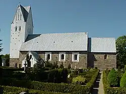 Selve kirken er en stor kvaderstenskirke. Bygningen består af et kor og et skib i romansk stil samt et tilbygget tårn og våbenhus i sengotisk stil. Kirketårnet er karakteristisk med dets fire højgavle. De romanske dele af kirken er opført i granitkvadre. Både den sydvendte dør og den nordvendte dør er i brug.[2]