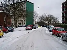 Tidligere var her et stråtækt hus i en vildsom have med pæretræer. Huset var beboet af en ældre kvinde uden tænder, ægte som kunstige. Tegneren Ib Spang Olsen, der færdedes i området som barn, og hans kammerater kaldte hende for ”heksen” og stjal under store protester hendes pærer. Det har han beskrevet i sine erindringer.[3]