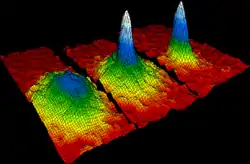Først den 5. juni 1996 lykkedes det to amerikanske fysikere ved University of Colorado at Boulder, Cornell og Wiemann, at fremstille et Bose–Einstein kondensat.[4] Nogle få måneder senere lykkedes det, uafhængigt af Cornell og Wiemann, en forskergruppe ved MIT under ledelse af tyskfødte Ketterle at fremstille et BEC. For påvisningen af BEC modtog Cornell, Wieman og Ketterle i 2001 Nobelprisen i fysik.[5]