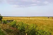 Tættere på kysten findes strandoverdrev og strandeng med planter som gul snerre, liden tusindgylden, strandmalurt, strandvejbred, strandtrehage, sandkryb og tætblomstret hindebæger. Den lille sjældne bregne slangetunge kan også findes her. Ind imellem danner tagrør og strandkogleaks rørsump.