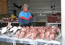 På markedet forhandles frisk fisk (rødfisk, torsk, havkat, hellefisk, helleflynder og – som sæsonvarer – stenbider og laks), hval, rensdyr, moskusokse og sælkød,[1], lomvie og edderfugl. Stedet spiller en vigtig rolle som et socialt forum for mange indbyggere, svarende til en landsbybrønden i andre dele af verden.[1] Selvom isbjørn er en sjældenhed i Godthåbsfjorden og i kystegnene i det sydvestlige Grønland, hænder det, at der kan købes bjørn på brættet.[4][5]
