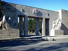 Kirkegården består af et område på ni hektar i det nordøstlige Riga, fem kilometer fra byens centrum. Den ligger op til både Mežakirkegården og Rainiskirkegården.[2] Mindesmærket udtrykker national taknemmelighed over for de faldne helte gennem kulturelle referencer til den lettiske nation.[3] Kirkegårdens hovedport er 10 meter høj og 32 meter bred. På hver side af indgangen, på 2 meter høje platforme står en 3,30 meter høj skulpturel gruppe, der repræsenterer et par døende gamle lettiske ryttere. Rytterne og hestene i den højre skulpturelle gruppe har lige holdninger, og en af hestene har sit hoved kastet tilbage, og opadgående bevægelse dominerer gruppen. Dette står i kontrast til den venstre gruppe, der er domineret af nedadgående bevægelser udtrykt gennem de bøjede hoveder hos ryttere og heste, rytterne har sænket deres skjolde og flagene de bærer. Over indgangen ses datoerne 1915 (året for de første begravelser på kirkegården) og 1920 (det sidste år af den lettiske krig for uafhængighed), mellem de to datoer er porten dekoreret med Letlands nationalvåben.[4] Fra hovedindgangen går den 205 meter lange "vej af tanker" gennem en allé af lindetræer til "helte-terrassen", omgivet af en egetræslund plantet i 1923.[2][4][5] Terrassen, belagt med plader af tuf, er omkring 73 meter bred og 78 meter lang, i dens centrum er det én meter høje alter med den evige ild placeret. Ligesom "helte-terrassen" hæver sig over "vejen af tanker", skjules det ud af syne fra den centrale gravplads, som er på et lavere niveau end "vejen af tanker", indtil man har passeret terrassen, som dermed giver et panorama af gravpladsen og former en barriere mellem verdenerne af de levende og de døde.[2]