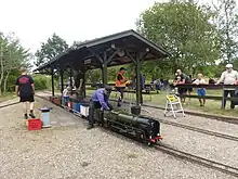 Banen drives af en klub, hvis medlemmer selv bygger de damp-, el- og motordrevne tog, der køres med. Togene er i forskellige størrelsesforhold, for eksempel 1:10 for normalsporsmateriel eller 1:3 for smalsporsmateriel. Et tog oprangeres typisk af et lokomotiv, en vogn til lokomotivføreren og en eller flere vogne til passagerne, der typisk sidder på vognene. Der kan dog også køres med et IC3-togsæt, som er stort nok til at sidde i.[1][3]