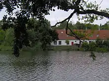 Udsigt over lille sø ved Mølleåen mod Brede Værk.