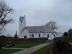 Kirkebygningen er opført gotisk stil og består af skib og kor ud i ét. Koret har en tresidet afslutning mod øst. Mod vest et kirketårn, der oprindeligt var et styltetårn med en åbning på vestsiden, som er tilmuret senere. Mod syd findes våbenhuset. Både tårn og våbenhus har kamtakkede gavle. Materialet er røde munkesten, men kirken fremstår hvidkalket. Man har tidligere været af den opfattelse, at hele bygningen er opført på samme tid. I dag mener man, at tårn og våbenhus sandsynlig er tilføjelser fra 1500-tallet. Skib og kor er dog meget velbevarede. Norddøren er muret til, men ses tydeligt som en niche i ydermuren. Man bemærker endvidere, at kirken kun har sydvendte vinduer. I det indre har kirken oprindelige spidsbuede hvælvinger.