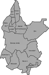 I kommunen ligger ud over hovedbyen bydelene og landsbyerne Bevern, Elm, Hesedorf, Hönau-Lindorf, Nieder Ochtenhausen, Iselersheim, Mehedorf, Minstedt, Ostendorf, Plönjeshausen og Spreckens.[1]