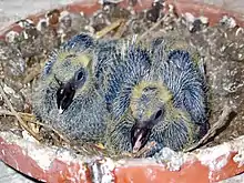 Forældreduerne ruger på æggene i 18 dage, hvorefter de helt nøgne og blinde unger udklækkes. Ungerne er 100% afhængige af forældrene, og den første uge mades de med duemælk, som er næringsrigt stof, der udskilles fra brevduernes slimhinder i kroen hos begge forældreduer. Herefter mades ungerne med korn, og efter ca. 25 dage er de klar til at forlade reden.