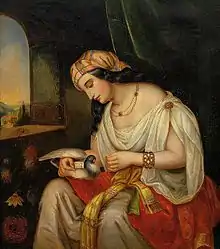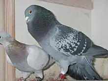 ![]() En brevdue med den karakteristiske ring om sit højre ben. Ringen indeholder information om duens tilhørsforhold og alder. | |