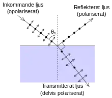 I dette eksempel er den indgående lysstråle upolariseret, mens den reflekterede er s-polariseret.