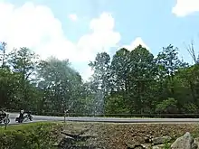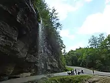 Oprindeligt blev al trafik på US Route 64 ført ind bag vandfaldet, men det gav problemer med is på vejbanen, når det var frostvejr samtidigt med at der var meget vand i floden. Derfor ændrede man hovedvejens rute, så den nu går på forsiden af vandfaldet, men bevarede det gamle vejstykke. Ved samme lejlighed blev der anlagt en pareringsplads, hvor besøgende kan parkere.
