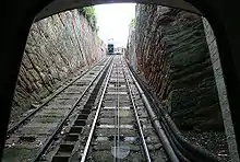 Oprindeligt blev banen drevet efter vægtstangsprincippet, hvor to indbyrdes forbundne vogne på skift fyldes med vand, så den øverste og tungeste trækker dem begge til banens modsatte ende. Det var et langsommeligt system, idet vandtankene rummede 11,5 ton, der hver gang skulle pumpes fra den nederste vogn til den øverste.[2]