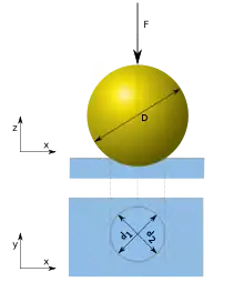 Brinell hårdhedstest anvendes til at bestemme en hårdhed af et materiale i enheden Brinell(HB). Metoden går ud på at en kugle trykkes ned i materialet og laver plastisk deformation så det er muligt at afmåle gennemsnitsdiameteren på aftrykket. Formlen for Brinell er som følge: HB=(2*F)/(π*D*(D-kvadratroden af D^2-d^2). Hvor F er kraften i kg, D er diameteren af kuglen i mm, d er diameteren af aftrykket i mm. Ved at gange tyngdeaccelerationen på F kommer enheden ud i mega Pascal (MPa).