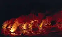 Storbritannien blev igen udfordret af Frankrig under Napoleon i en kamp, der i modsætning til tidligere krige, var udtryk for en kamp mellem de to landes ideologier.[59] Det var ikke kun Storbritanniens position på verdensscenen, der var truet. Napoleon truede med at invadere selve Storbritannien på samme måde som hans armeer havde løbet mange lande på kontinentet over ende.