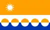 ![]() | Ydre Hebriders flag | Fem horisontale bølgeformede striber i blå og hvid, og tre sorte sejlskib på gul baggrund |