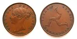 Sedlerne og mønterne er kun gyldige som betalingsmiddel på Isle of Man. I Storbritannien er sedlerne hverken lovlige eller gyldige som betalingsmiddel, men alle sedlerne på nær 1-pundsedlerne modtages dog ofte. Isle of Man udsteder sedler i værdierne 1, 5, 10, 20 og 50 pund.[12] Mønter udstedes i værdierne 1, 2, 5, 10, 20 og 50 pence samt 1 og 2 pund.[13] Mønter og frimærker er en vigtige eksportkilder for Isle of Man, derfor ændrer Isle of Man ofte motiverne på sine mønter for at gøre dem mere interessante for samlere. Isle of Mans 5-pundseddel er den eneste pengeseddel med et billede af en pub.
