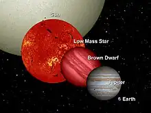 En brun dværg er et objekt, der optager masseområdet mellem de tungeste gaskæmpeplaneter og de letteste stjerner, med en masse mellem ca. 13 og 75-80 gange Jupiters (MJ),[1][2] eller ca. 2.5×1028 kg til ca. 1.5×1029 kg. Brune dværge kan være fuldstændigt konvektive uden lag eller kemisk differentiering efter dybde.[3]