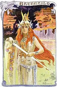 Skjoldmøen Brynhild. Postkort af Gaston Bussière (en), 1897.