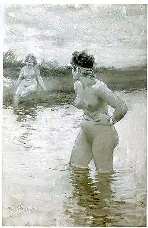 Valkyrierne Brynhild og Gudrun. Akvarel af Anders Zorn