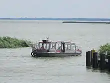 Cykelfærge over Peenestrom på vejen mellem Karnin og Kamp; i baggrunden Stettiner Haff