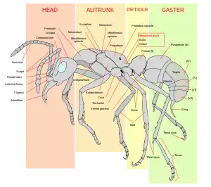 Bugen er hos visse grupper blevet stærkt modificeret; hos myrer er det første segment af bugen fx blevet føjet sammen med thorax, mens den anden danner et selvstændigt hulrum kaldet petiole. Visse myrearter kan have et yderligere postpetiolært segment. [5]