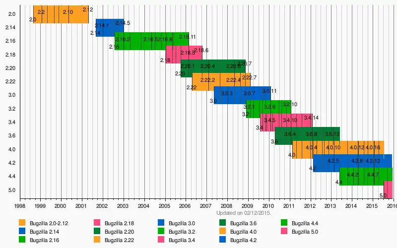 Bugzilla var originalt udtænkt af Terry Weissman i 1998 til Mozilla, og var originalt programmeret med Tcl, men er nu omskrevet på Perl.[2]