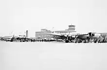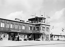 Den "nye" terminalbygning fra 1959 med flyveledertårnet på taget findes fortsat