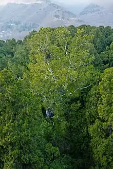 I Tianshui lavlandet på nordsiden af Qinlingbjergene i Sichuan findes tempererede løvskove, domineret af eg. Her vokser arten sammen med bl.a. armanfyr, gran-slægten (flere arter), manchurisk birk, Populus davidiana (en art af poppel), Quercus liaotungensis og Quercus variabilis (arter af eg), rødbirk, savbladet eg og flere arter af ædelgran[1]
