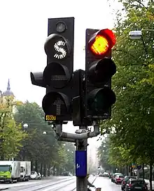 Desuden ses i udlandet kombinationer, hvor det midterste lys er en prik og/eller det nederste er en trekant (evt. pil) – men betydningen er den samme.