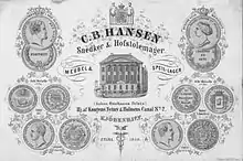 1843 havde C.B. Hansen købt Erichsens Palæ på Kongens Nytorv (Holmens Kanal 2). I 1888 solgte hans enke, Jacobine Krause (1819-1892), palæet til Kjøbenhavns Handelsbank for 425.000 kr., men firmaet forblev i naboejendommen, Holmens Kanal 4, og oprettede også en fabrik i Adelgade 82. I 1905 solgte firmaet Holmens Kanal 3 til Handelsbanken for 300.000 kr. Senere flyttede C.B. Hansens Etablissement til Store Kongensgade og senere til Bredgade 32.