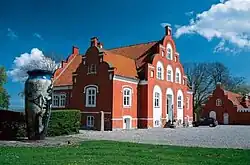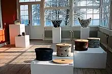 ![]() Keramikmuseet i Middelfart. Til venstre en kæmpekrukke af Peter Brandes. | |