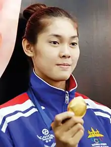 Taekwondo-kæmperen Sorn Seavmey var flagbærer for Cambodja ved åbningsceremonien for sommer-OL 2016.