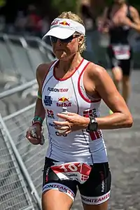 ![]() Camilla Pedersen ved EM i langdistance triatlon 2014 i Frankfurt am Main | |