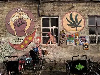 Cannabissalg og brug er, trods ulovligt, blevet uofficielt tolereret i den københavnske bydel kendt som Fristaden Christiania.[8]