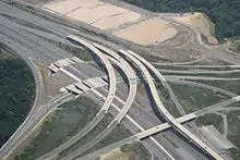 På en forholdsvis kort strækning er vejen udvidet til 10 spor, men når den krydser American Legion Memorial Bridge har den igen kun 6-spor.