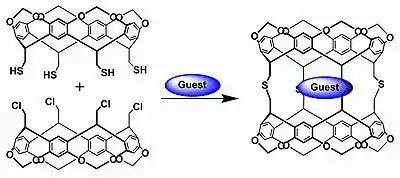 I modsætning hertil giver hemicarcerander "gæsterne" mulighed for at komme ind og ud af det molekylære hulrum ved høje temperaturer, men vil danne stabile komplekser ved lavere temperaturer. Komplekser dannet af en hemicarcerand og et "gæste"-molekyle kaldes hemicarceplexer.