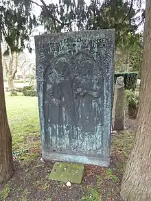 Carl og Louise Janssens gravsted med epitafium på Holmens Kirkegård i København.