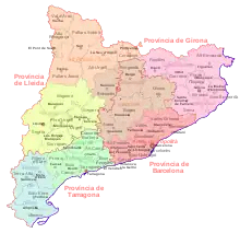 Inddelingen i provinser har sin baggrund i den franske besættelse under Napoleon-krigene i begyndelsen af 1800-tallet. Tidligere havde Catalonien været inddelt i vegueries ("veguerior"; ental: "vegueria"), nærmest modsvarende herreder eller grevskab. Vegueriorna fandtes allerede i det middelalderlige Catalonien og eksisterede frem til, at de i 1716 erstattedes af corregimientos,[20] en kastiliansk administrativ inddeling som indførtes i forbindelse med, at det catalanske selvstyre blev afskaffet.