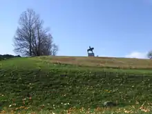 Imponerende rytterstatuer af generalmajorerne Oliver O. Howard og Winfield S. Hancock dominerer toppen af det østlige Cemetery Hill.