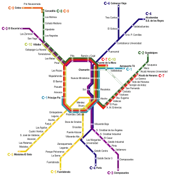 Cercanías er en division af RENFE, det statsejede spanske jernbaneselskab, og driver forstadslinjerne i de største spanske byer. I og omkring Madrid har Cercanías otte linjer, der med 1385 forbindelser hver arbejdsdag bringer 880.000 passagerer frem mellem de 96 stationer.