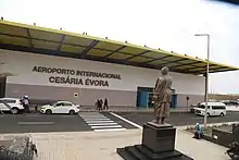 En stor statue af Cesária Évora foran lufthavnen af samme navn