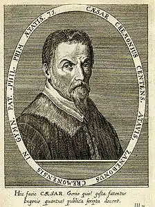 Cesare Cremonini (eller Cremonino, latiniseret Caesar Cremoninus), 1550-1631. Lærd venetianer, hvis filosofi var en syntese af Aristoteles og kristendommen. Corfitz Ulfeldt studerede under ham i Padova i 1628 og blev senere citeret for at have udtalt, at alt hvad han havde lært, skyldtes Cremonini.