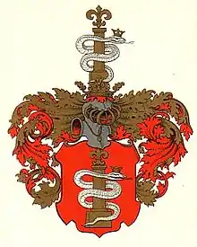 stiftamtmand Peder Charisius (1608-1685), blev 28. marts 1659 adlet med flg. våben: En af en kronet sølv slange omslynget guld pille, der foroven bærer en guld lilje, i rødt felt, på den kronede hjelm en guld pille, bærende en guld lilje.