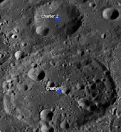 De kratere, som kaldes satellitter, er små kratere beliggende i eller nær hovedkrateret. Deres dannelse er sædvanligvis sket uafhængigt af dette, men de får samme navn som hovedkrateret med tilføjelse af et stort bogstav. På kort over Månen er det en konvention at identificere dem ved at placere dette bogstav på den side af satellitkraterets midte, som ligger nærmest hovedkrateret.[9][10][11] Charlierkrateret har følgende satellitkratere: