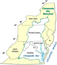 Chesapeake Bay er det største flodudløb i USA. Det ligger som en bugt omkranset af Maryland og Virginia med udløb i Atlanterhavet. Chesapeake Bay afvander 166.534 km² – hele Washington DC og dele af New York, Pennsylvania, Delaware, Maryland, Virginia og West Virginia.[1] Over 150 floder og vandløb har udløb i bugten.