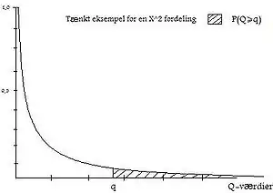 χ²-fordelingen (som ses på illustrationen) er ligesom normalfordelingen en absolut kontinuert tæthedsfunktion, hvor arealet under grafen er lig 1, men i modsætning til normalfordelingen, ændrer χ²-fordelingen sig alt efter antallet af frihedsgrader. Når vi i χ²-testen finder P(χ² ≥ q) finder vi altså arealet under grafen til højre for q – hvilket netop er det kritiske område.