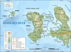![]() Kort over Chios. | |