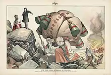 Tegning fra 1904, USA's præsident Roosevelt konfronterer Tsaren med pogromen i Kishinev