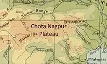 Chota Nagpur-højslettens placering i det nordøstlige Indien.