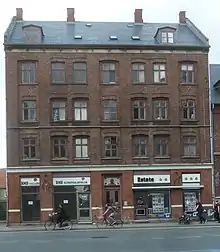Bygningen med kælder og 4 stokværk i røde mursten har 8 lejligheder, hvoraf (i 1900) 3 friboliger. Den er opført 1877-78 efter tegninger af C.A.C. Leser, og blev fredet i 1980. Over døren findes et portrætrelief af Hans Jørgen Tvede.