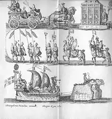 Udsnit af et stik, som viser optogene på Amagertorv under Det store bilager.